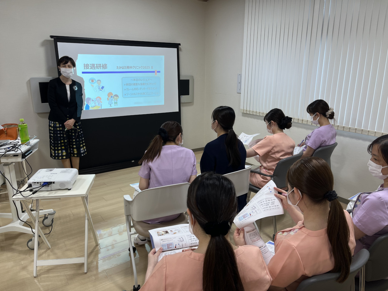当院のスタッフは、外部から先生をお招きして、定期的に接遇講習を受けております。「毎回、大変勉強になる講習会で、先生にはいつもお世話になっております。」(スタッフ一同)